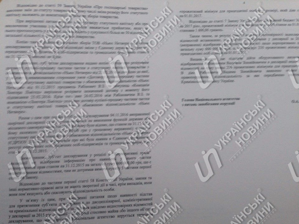 Таким образом, Рабинович указал недостоверные сведения о корпоративных правах на общую сумму 600 тыс. гривен, что превышает 250 прожиточных минимума для трудоспособных лиц на 1 января 2017 года.