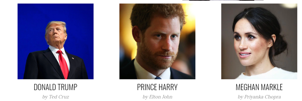 В категорию влиятельные "лидеры" также внесли президента Франции Эммануэля Макрона, главу КНР Си Цзиньпина, премьер-министра Канады Джастина Трюдо, наследного принца Саудовской Аравии Мохаммеда бин Салмана, премьер-министра Японии Синдзо Абэ, мэра Лондона Садока Хана, а также британского принца Гарри и его невесту Меган Маркл.