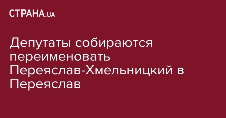В Верховной Раде зарегистрировано постановление о переименовании города Переяслав-Хмельницкий в Киевской области.