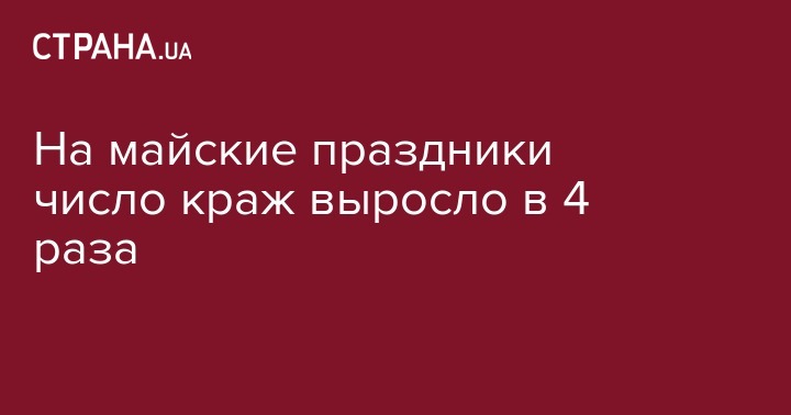 Количество краж за майские праздники увеличилось в четыре раза. В Киеве в среднем совершают 24 кражи в сутки. Подобная статистика в последний раз встречалась в 90-х. Особый всплеск криминала наблюдался именно во время майских праздников, сообщают "Подробности".