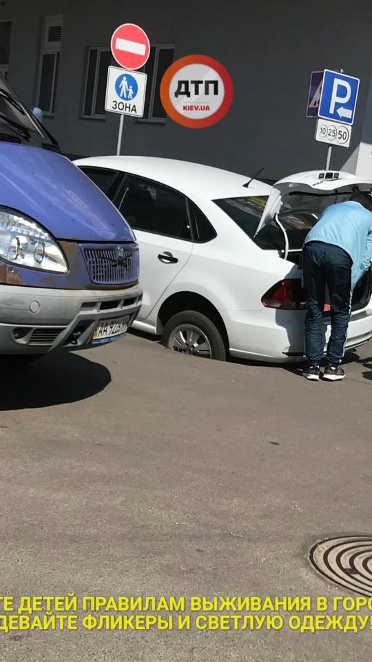 "Киев. Просто провалился под землю. На парковке", - говорится в сообщении.
