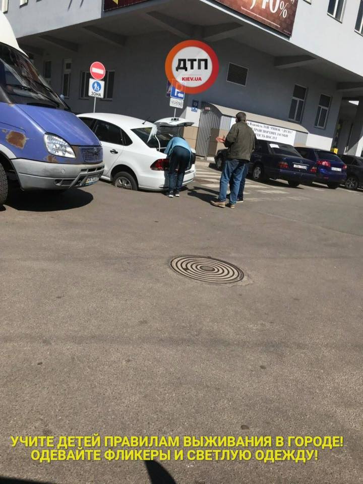 В Киеве на одной из парковок автомобиль белого цвета провалился под асфальт. Об этом сообщает dtp.kiev.ua на своей странице в Facebook.