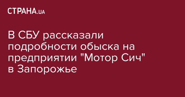 Сегодня, 23 апреля, служба безопасности нагрянула с обысками на предприятие публичного акционерного общества "Мотор Сич" в Запорожье. Обыски проводятся в рамках расследования о подготовке диверсии.