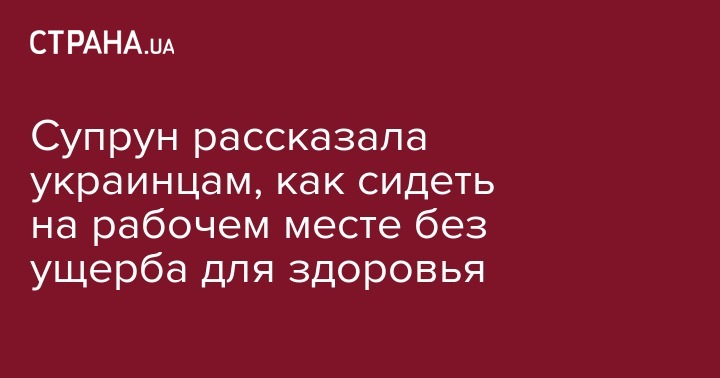 И.о. министра здравоохранения Ульяна Супрун порекомендовала украинцам каждые 30 минут вставать с рабочего места, мотивируя тем, что затянувшееся сидение может спровоцировать обострение сердечно-сосудистых заболеваний, ожирение, диабет и даже рак.