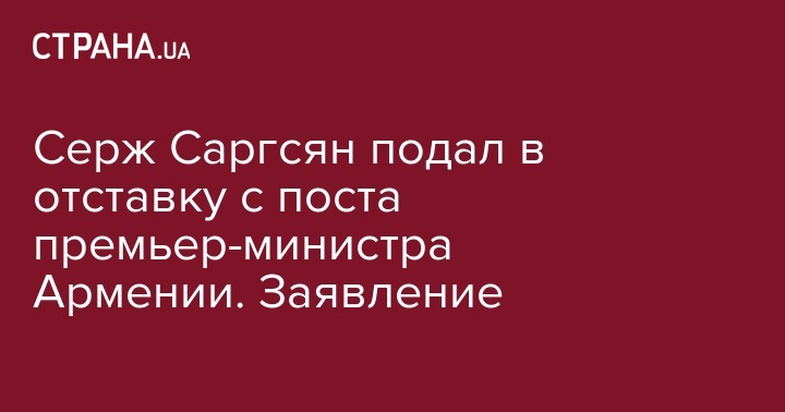 Серж Саргсян подал в отставку с поста премьер-министра Армении. Заявление