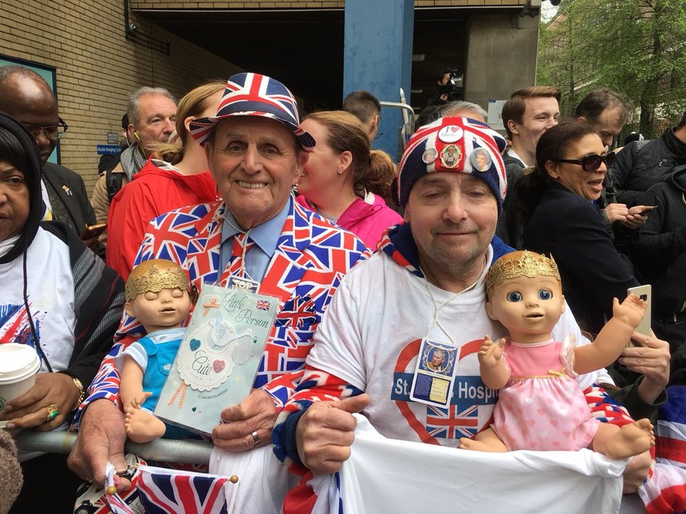 Некоторые люди в ожидании наряжаются в костюмы в цветах британского флага и обвешиваются значками, посвященными королевской семье.