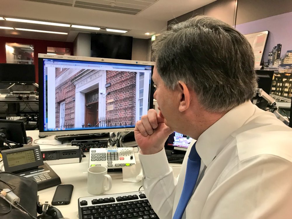 Журналистка BBC Фелисити Бейкер показала, как ее коллега наблюдает за прямой трансляцией с камеры возле больницы, где рожала герцогиня Кембриджская.