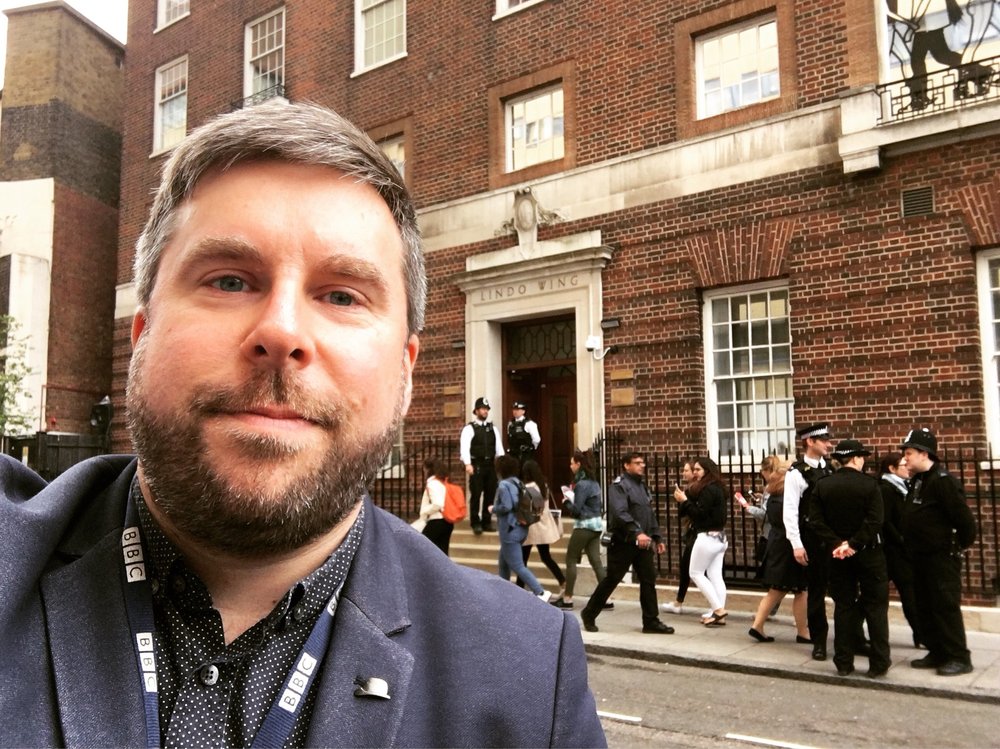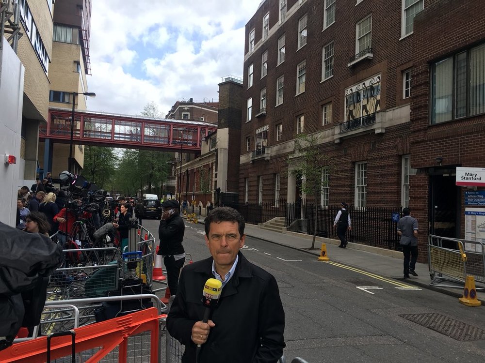 Журналист Бен Тавенер: "Мы (и сотни других журналистов!) ждём у больницы Сент-Мери на западе Лондона вестей о новом королевском младенце".