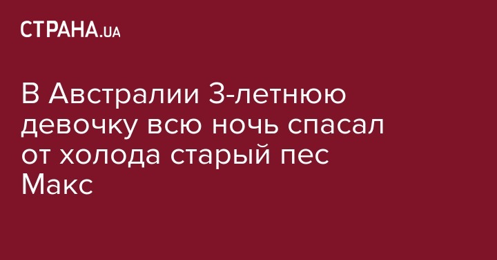 В Австралии 3-летнюю девочку всю ночь спасал от холода старый пес Макс