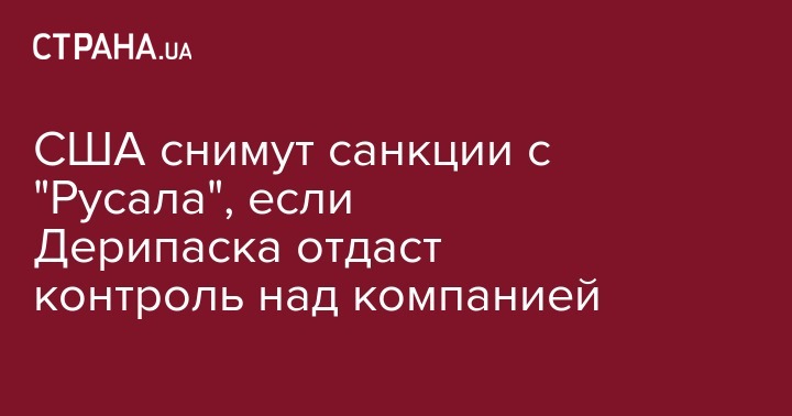 "Министерство финансов США заявило, что смягчит санкции в отношении "Русала", если Олег Дерипаска откажется от контроля (над компанией - Прим. Ред.)", - говорится в сообщении.