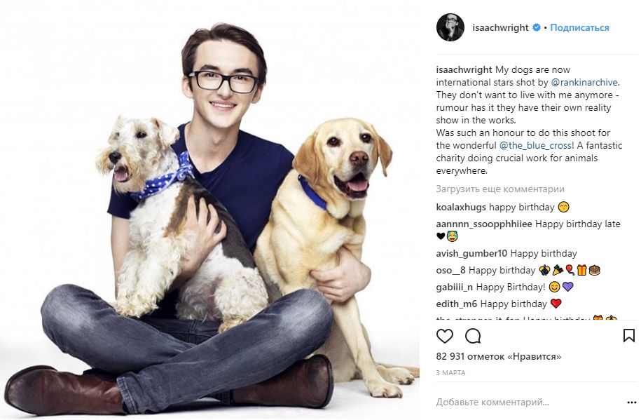 Айзек Хемпстед Райт (Бран Старк) похвастался профессиональной фотосессией со своими собаками.