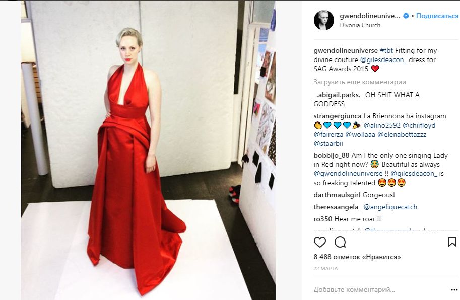Гвендолин Кристи (Брианна Тарт) завела Instagram только в марте. В основном она делится селфи, бытовыми фотографиями и снимками с фотосессий.