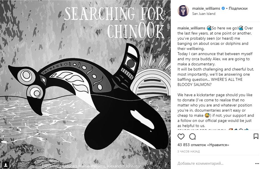Мэйси Уильямс (Арья Старк) рассказывает о том, что собирается снимать документальное кино вместе со своим другом и просит поддержать ее проект на Kickstarter.