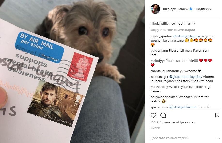 Николай Костер-Вальдау (Джейме Ланнистер) показал полученное по почте письмо с маркой, на которой изображен его персонаж.