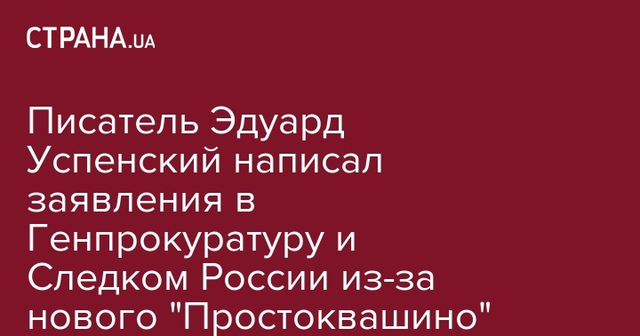 Писатель Эдуард Успенский направил заявление в Генеральную прокуратуру России, Следственный комитет и Счетную палату из-за выпуска киностудией "Союзмультфильм" новых серий мультфильма "Простоквашино".