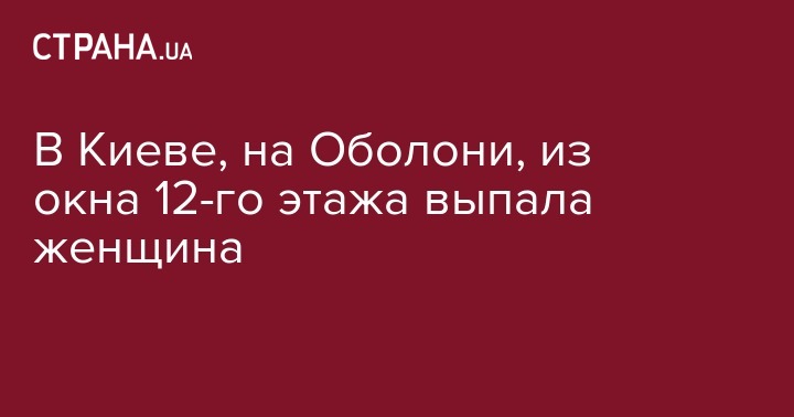 В Оболонском районе Киева, на улице Приозерной, женщина выпала из окна 12-го этажа жилого дома, передает dtp.kiev.ua.