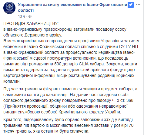 Об этом сообщает Управление защиты экономики в Ивано-Франковской области на своей странице в Facebook.