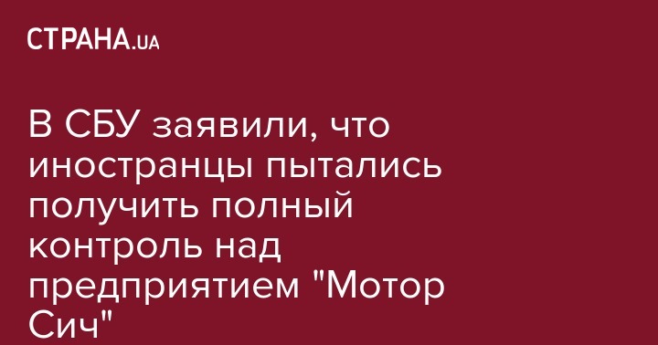 По данным СБУ, иностранцы планировали перенести на свой завод авиадвигателей украинское производство и технологии. Для этого они совершили опосредованную концентрацию контрольного пакета акций ПАО "Мотор Сич", который сейчас оформлен на шесть офшорных компаний и физлицо.