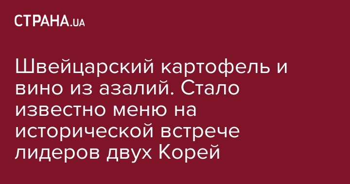 На исторической встрече северокорейского лидера Ким Чен Ына с президентом Южной Кореи Мун Чжэ Ином, которая состоится в южнокорейской деревне Панмунджом 27 апреля, к столу будут поданы картофель, запеченная морская рыба, лапша и вино из азалий.