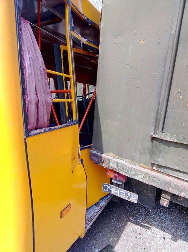 В Бахмуте Донецкой области маршрутка не пропустила военный грузовик. Фото