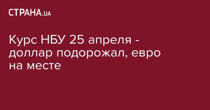 В среду, 25 апреля, Нацбанк установил официальный курс гривны по отношению к иностранным валютам. По сравнению с предыдущим рабочим днем доллар стал дороже, а курс евро не изменился.