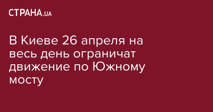 Завтра, 26 апреля, в Киеве ограничат движение транспорта по Южному мосту из-за ремонтных работ.