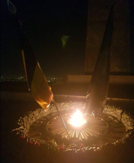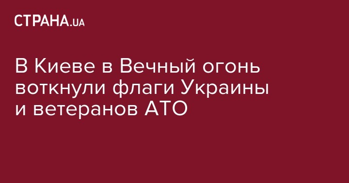 В Парке славы в Киеве на постаменте Вечного огня, который вандалы заливали цементом, установлен национальный флаг Украины и флаг "Всеукраинского союза ветеранов АТО".
