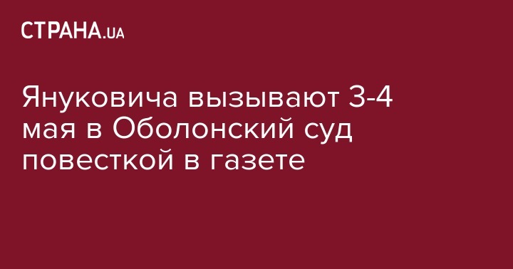 Януковича вызывают 3-4 мая в Оболонский суд повесткой в газете