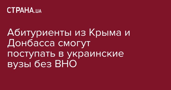 Абитуриенты из Крыма и неподконтрольной части Донбасса смогут поступать в украинские вузы или ПТУ по упрощенной процедуре - без прохождения ВНО. Об этом сообщила пресс-служба МОН.