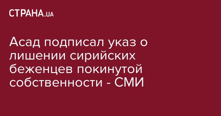 Глава Сирии Башар Асад подписал указ, которым фактически лишил покинувших страну беженцев прав на их собственность.