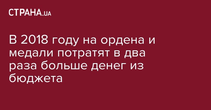 В 2018 году на госнаграды из бюджета потратят в два раза больше денег чем в прошлом году, почти 47 млн гривен.