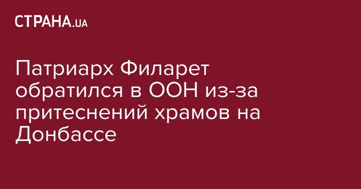 Патриарх Филарет обратился в ООН из-за притеснений храмов на Донбассе