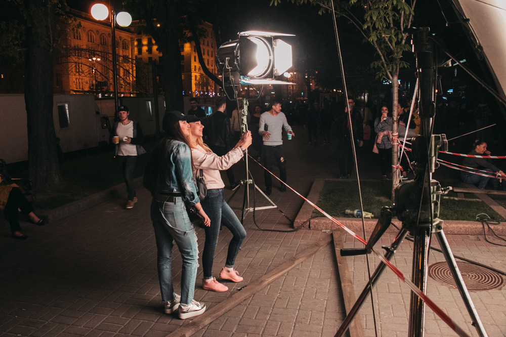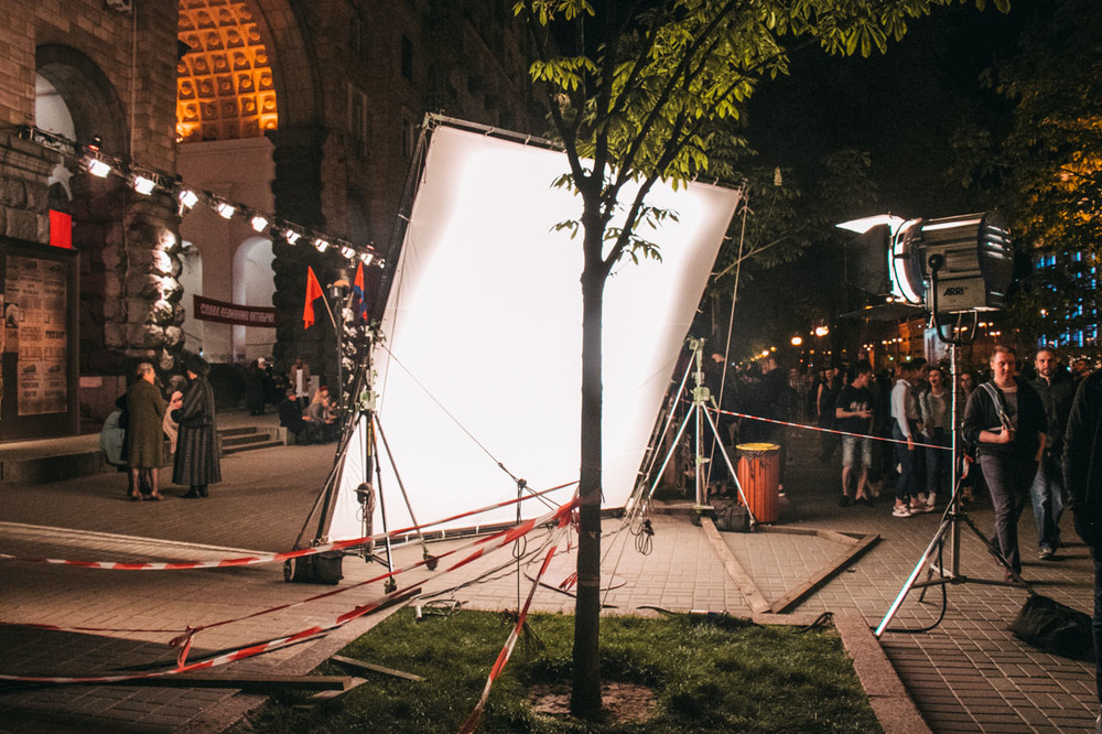 Установку советской символикина съемочной площадке в центре столицы начали 29 апреля около 20:00. Съемочная группа работала до 6:00.