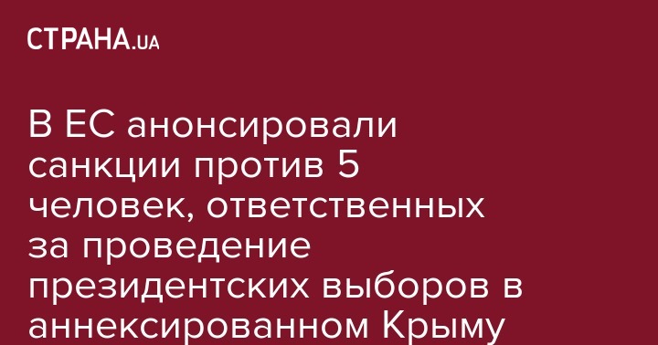 Власти Европейского Союза намерены заморозить активы пяти людей, ответственных за проведение выборов президента России в аннексированном Крыму.
