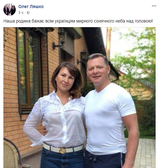 Глава Радикальной партии Олег Ляшко сегодня запостил фотографию себя с женой и пожелал украинцам мирного неба над головой, а вчера он отмечал день рождения тещи.