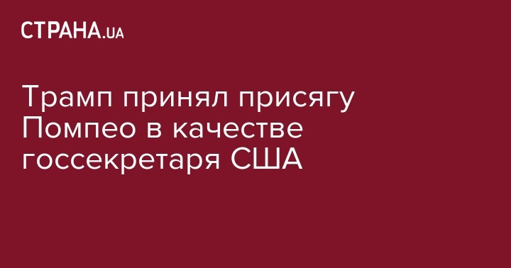 Президент Сеодиненных Штатов Америки Дональд Трамп принял присягу Майка Помпео в качестве 70-го государственного секретаря страны.