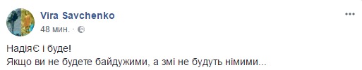 Фотографию Вера Савченко опубликовала на своей странице в Facebook и подписала: "Надежда есть и будет!".