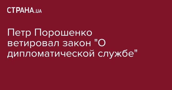 В пятницу, 4 мая, президент Украины Петр Порошенко ветировал принятый Верховной Радой закон "О дипломатической службе", который уточняет правовые основы и новый порядок организации нашей дипломатии.
