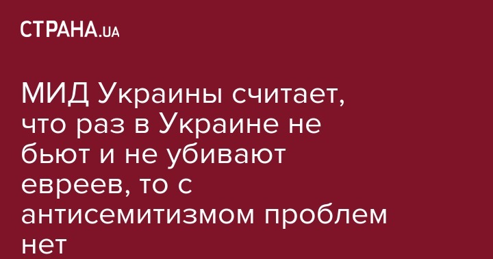 Об этом сообщает сайт МИД. Дипломаты уверены, что раз в стране нет насилия против евреев - то и уровень антисемитизма в Украине низкий.