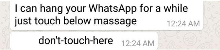 "Твой WhatsApp зависнет на некоторое время, если ты нажмешь на следующее сообщение", — говорится в вредоносной рассылке. Затем следуют несколько пробелов и надпись "не нажимай сюда", - говорится в сообщении.