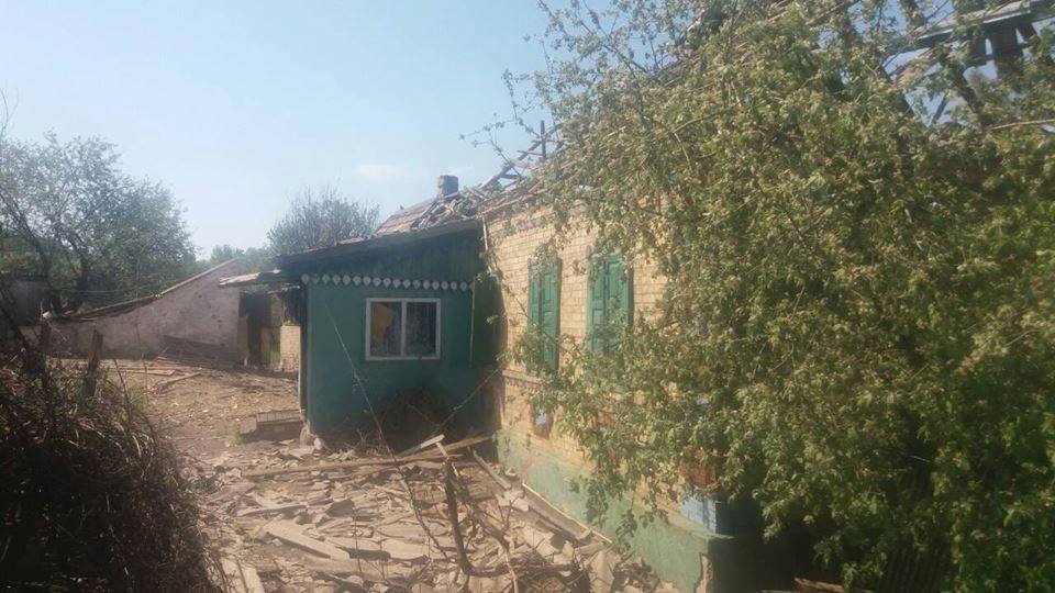 В сети появились фото разрушенных домов в поселке Зайцево Донецкой области, который был обстрелян из пушек 6 мая. В результате обстрела был поврежден дом и ранен мирный житель.