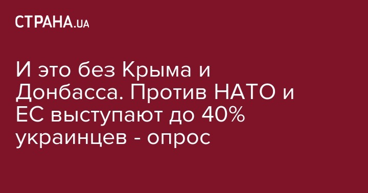 И это без Крыма и Донбасса. Против НАТО и ЕС выступают до 40% украинцев - опрос