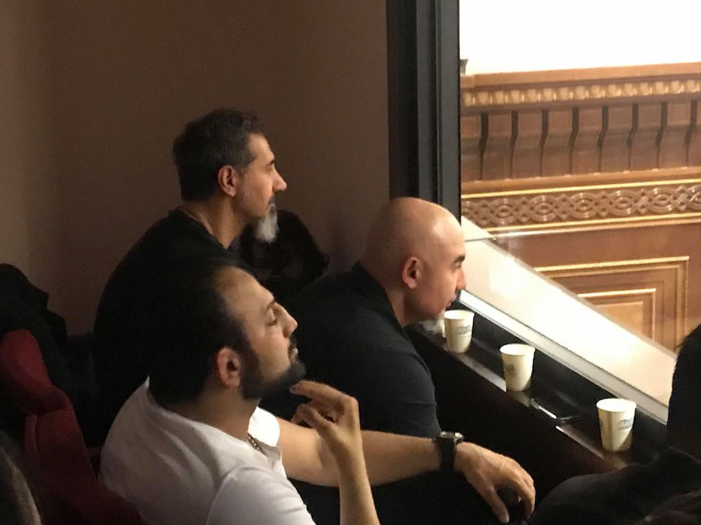 11:45 В парламенте Пашиняна слушает лидер группы System of a Down Серж Танкян, который накануне зажигал митинг в Ереване. Фото "Страны".