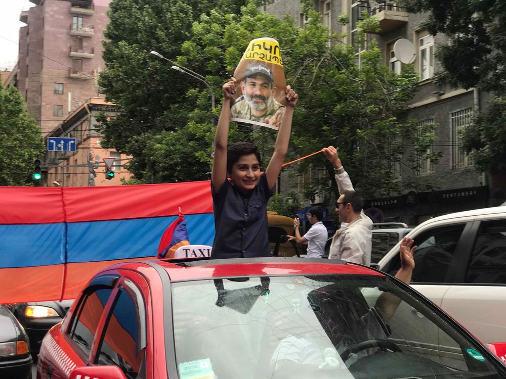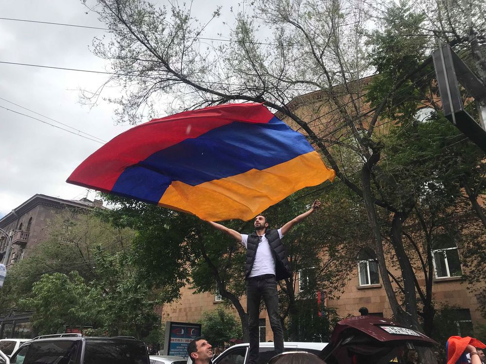 12:59 В городе творится нечто неописуемое. Машины едут мимо парламента и сигналят в знак поддержи избрания Пашиняна премьером.
