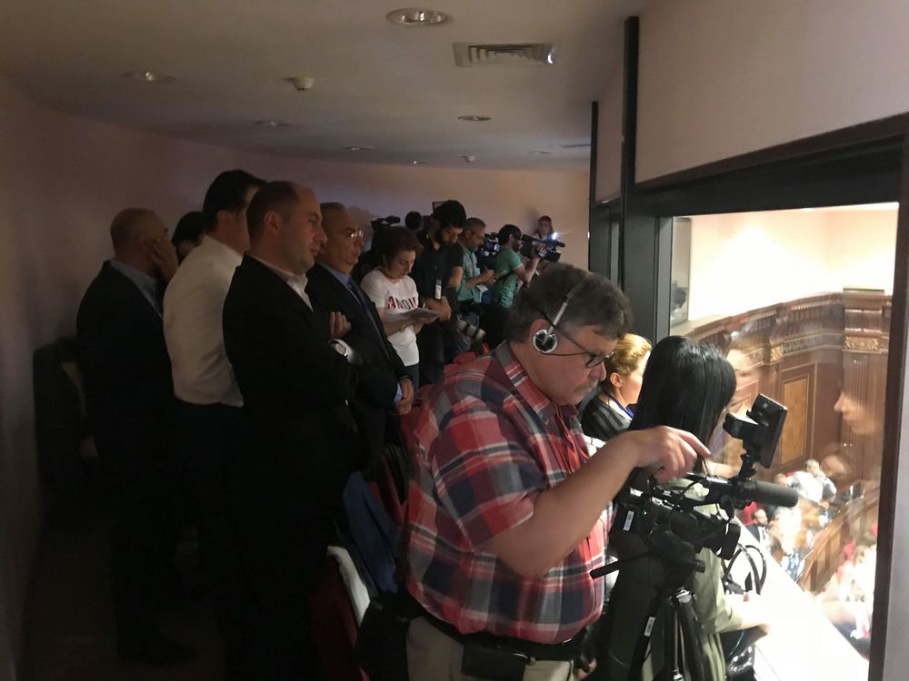 11:06 За трансляцией заседания парламента следят с улицы, которая заполнена сторонниками Пашиняна. Наружу выведены экраны и динамики.