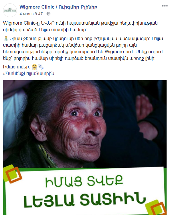 11:23 Объявление от местной клиники, которая обещает бесплатно подлечить бабушку Лейлу - "бабу Параску" армянского майдана.