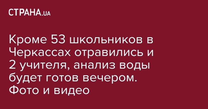 Также лаборатория Госпродпотребслужбы Черкасс взяла пробы воды из системы централизованного водоснабжения школы и бутилированной питьевой воды. Результаты исследований ожидаются в 16:00.