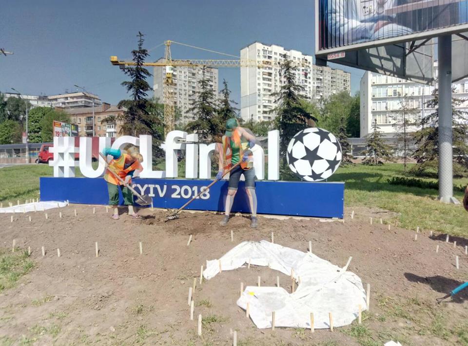 В частности, на Голосеевском проспекте уже появилась объемная надпись, посвященная чемпионату, и тематическая клумба. Также на улице Набережно-Крещатицкая создали цветочное панно, которое приурочено к финалу ЛЧ.