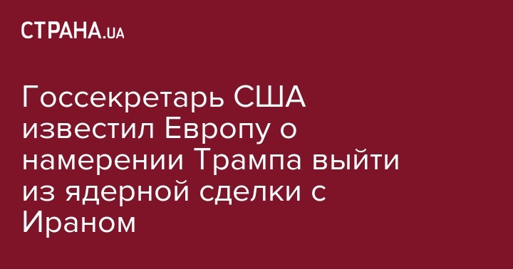 Государственный секретарь США Майк Помпео сообщил представителям Франции, ФРГ и Великобритании, что президент США Дональд Трамп намерен выйти из Совместного всеобъемлющего плана действий (СВПД) по иранской ядерной программе, сообщает во вторник новостной интернет-портал Axios со ссылкой на информированные источники.
