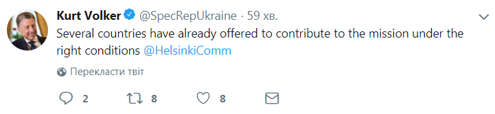 Волкер также рассказал, что сейчас ведутся дискуссии о возможном составе и формате миссии.